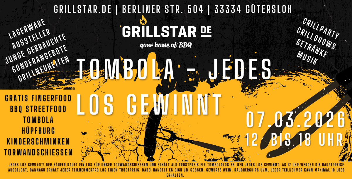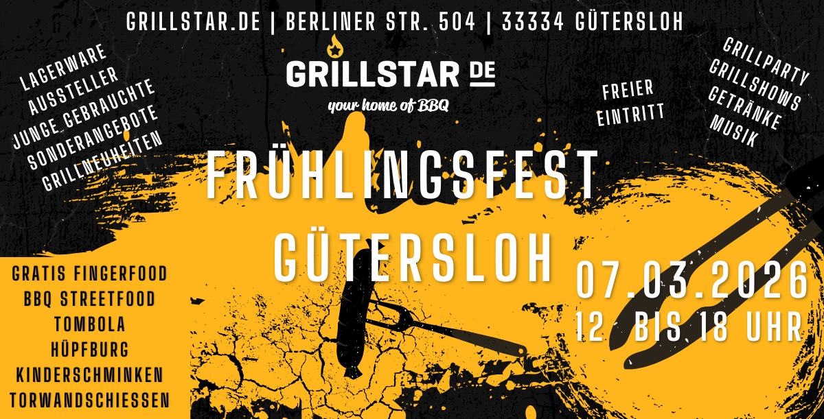 Verpasse nicht das BBQ-Highlight des Jahres und mach dich bereit für einen Tag voller Leidenschaft, Spaß und Kulinarik! Egal, ob du erfahrener Grillmeister bist oder deine ersten Grillversuche starten möchtest – beim Stadtfest Gütersloh bei Grillstar.de bist du genau richtig. Erlebe die Faszination Grillen hautnah, entdecke Neuheiten und Trends aus der Welt des Outdoor Cookings und teile deine Leidenschaft mit Gleichgesinnten. Wir freuen uns darauf, dich am 07.03.2026 bei uns begrüßen zu dürfen.