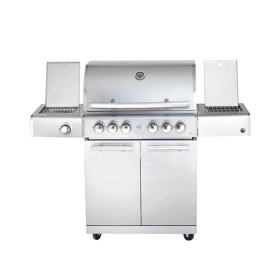 Der Chef L Grill ist mit vier stufenlos regelbaren Edelstahlbrennern ausgestattet, die jeweils 3,5 kW Leistung bieten. Hinzu kommt ein leistungsstarker Seitenkocher mit 3,2 kW, der sich ideal für die Zubereitung von Wok-Gerichten und anderen Beilagen eignet. Der 3,5 kW starke Backburner ermöglicht Ihnen, köstliche Gerichte vom Drehspieß direkt auf Ihrem Grill zuzubereiten.