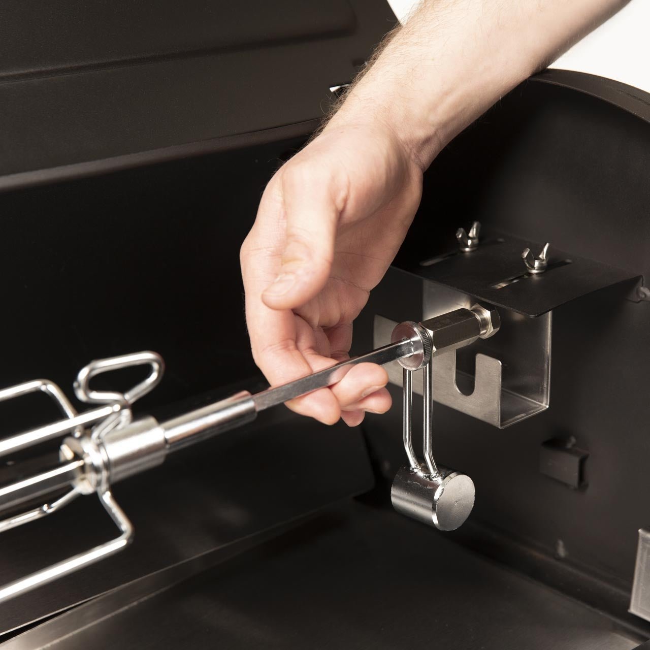 Das Pellet Smoker Drehspießset mit Elektromotor von Broil King umfasst alles, was ein gutes Set haben sollte und sorgt für die besten Ergebnisse. Mit dieser Rotisserie erweiterst Du das Einsatzspektrum Deines Grills enorm und die Zubereitung eines leckeren Spießbraten oder knusprigen Hähnchens sind von nun an ein Kinderspiel. Durch diese Rotation des Grillguts wird ein Großteil der Bratensäfte zu einer köstlichen Kruste und die Wärme des Smokers kann so gleichmäßig auf alle Seiten einwirken.