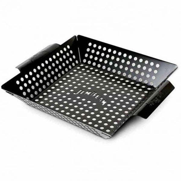 Schöner eckiger Grillwok aus antihaftbeschichtetem Metall mit Jim Beam Schriftzug im Metall. Im Wok kann frisches Gemüse und vieles mehr zubereitet werden. Durch die feine