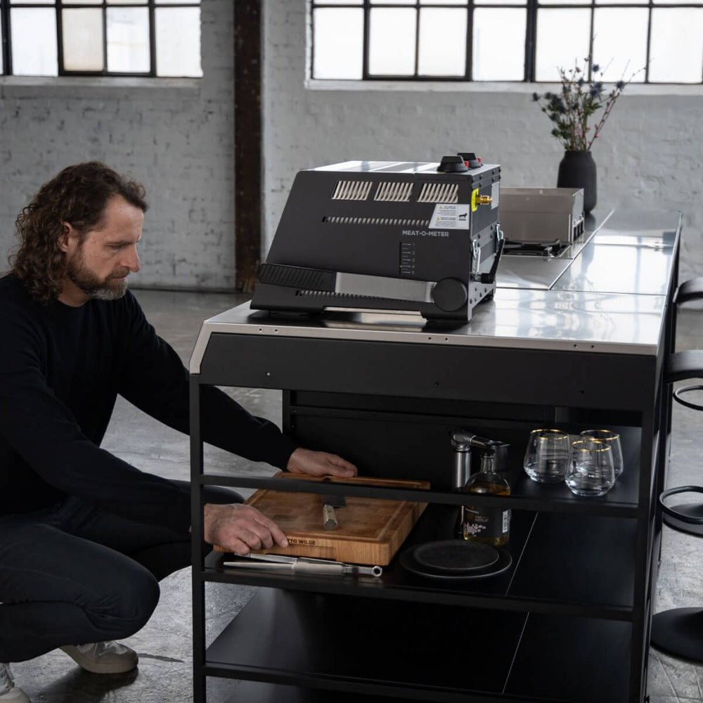 Mit dem R24 Regalmodul Tief stehen noch mehr Möglichkeiten für die Outdoor Küche zur Verfügung. Durch das offene Design ist alles jeder Zeit griffbereit und durch die anpassbaren Regalböden, ist auch die Aufbewahrung von Sektgläsern oder Flaschen möglich. Und die Edelstahloberfläche ist eine fantastische Arbeitsfläche.